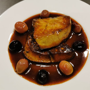 Le dressage des plats tranche singulièrement avec la légèreté des entrées. On entre dans une autre dimension, une dimension plus roborative. Surtout avec le croustillant de volaille et foie gras et sa réduction au vin rouge. Petits mangeurs s'abstenir... Deux beaux morceaux de volaille farcie, malheureusement un peu sec malgré la sauce, un feuilleté de légumes et des pommes de terre que tout le monde croyait être des champignons, il fallait être costaud pour en venir à bout.
